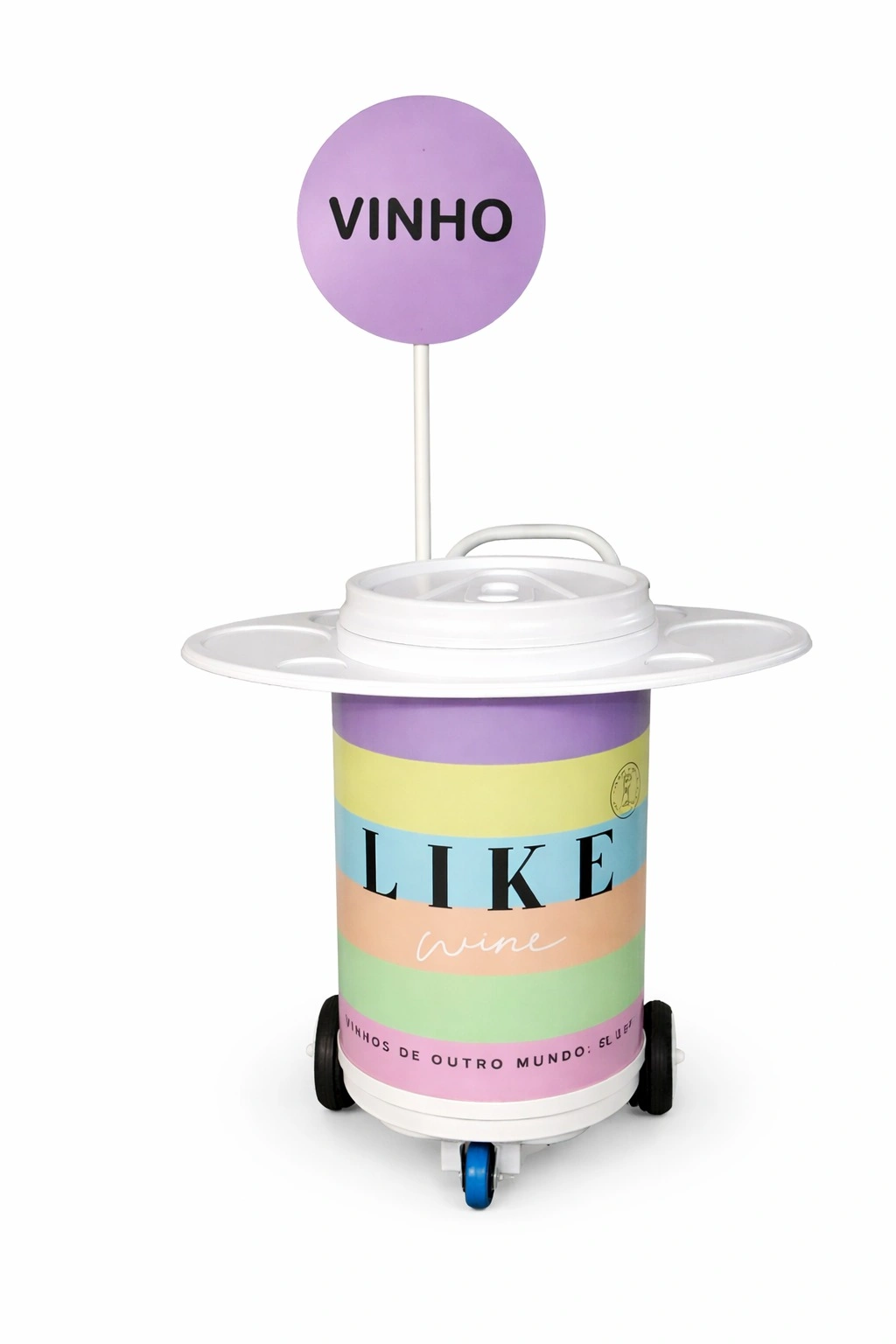 O cooler carrinho personalizado foi projetado para facilitar o deslocamento em eventos e tem alta capacidade de armazenamento.